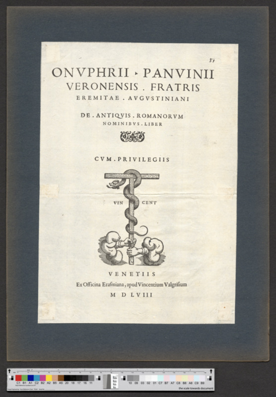 - VENETIIS / Ex Officina Erasmiana, apud Vincentium Valgrisium / M D LVIII