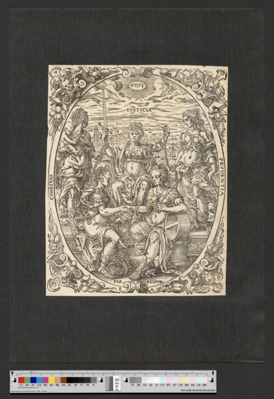 "IVSTICIA / CHARITAS / PAX / RESPVB. / PRUDENTIA