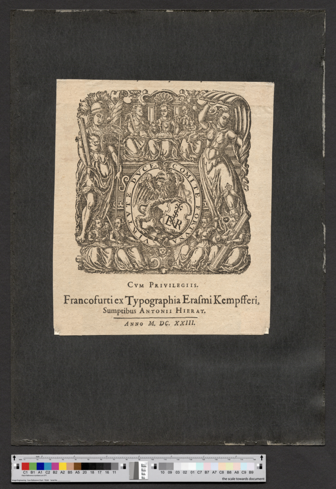 - CVM PRIVILEGIIS. / Francofurti ex Typographia Erasmi Kempfferi, / Sumptibus ANTONII HIERAT. / ANNO M. DC. XXIII.
