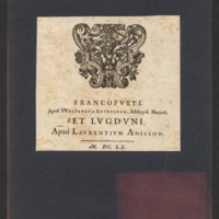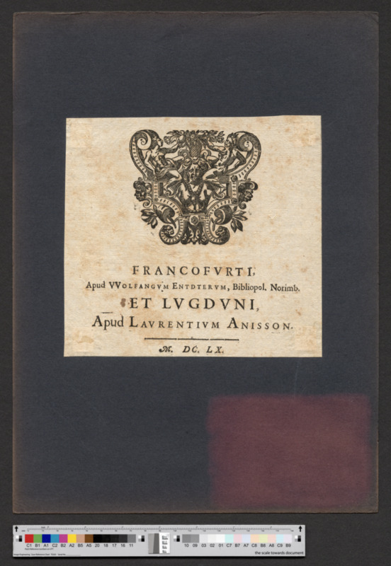 - FRANCOFVRTI, / Apud VVOLFANGVM ENTDTERVM, Bibliopol. Norimb. / ET LVGDVNI, / Apud LAVRENTIVM ANISSON. / M. DC. LX.