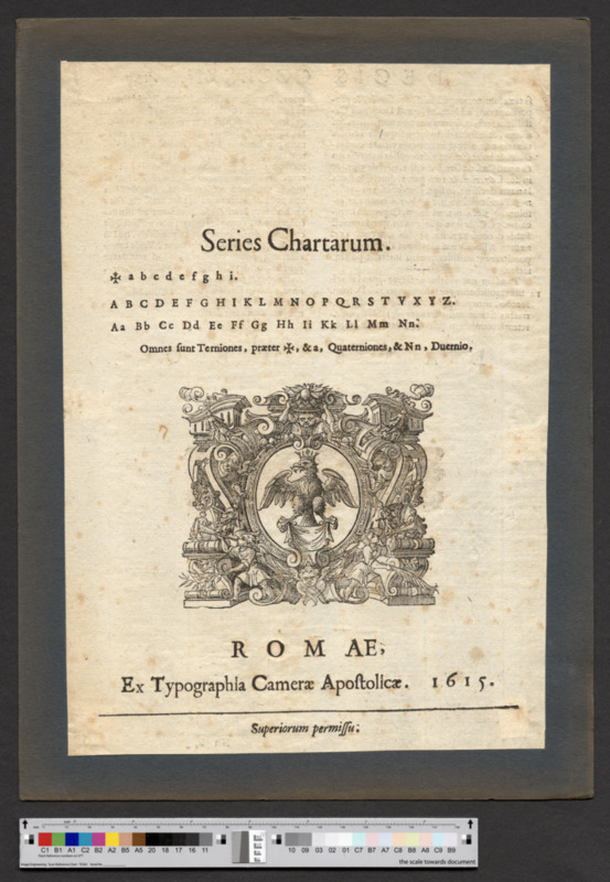 - ROMAE, / Ex Typographia Camerae Apostilicae. 1615. / Superiorum permissu.