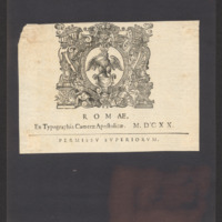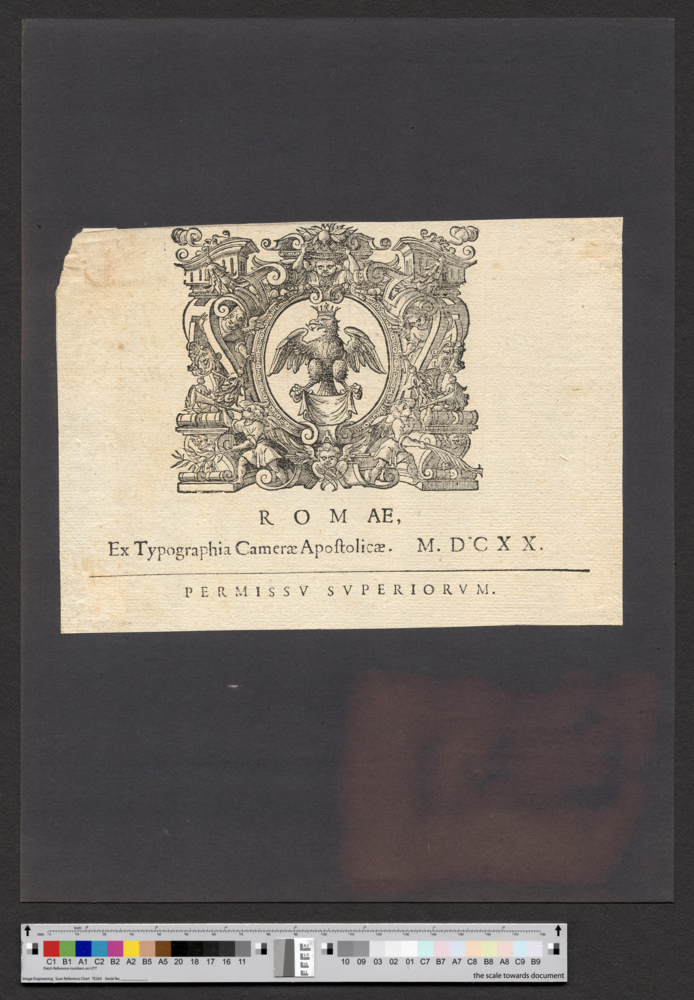 - ROMAE, / Ex Typographia Camerae Apostilicae. M. DCXX. / PERMISSV SVPERIORVM.