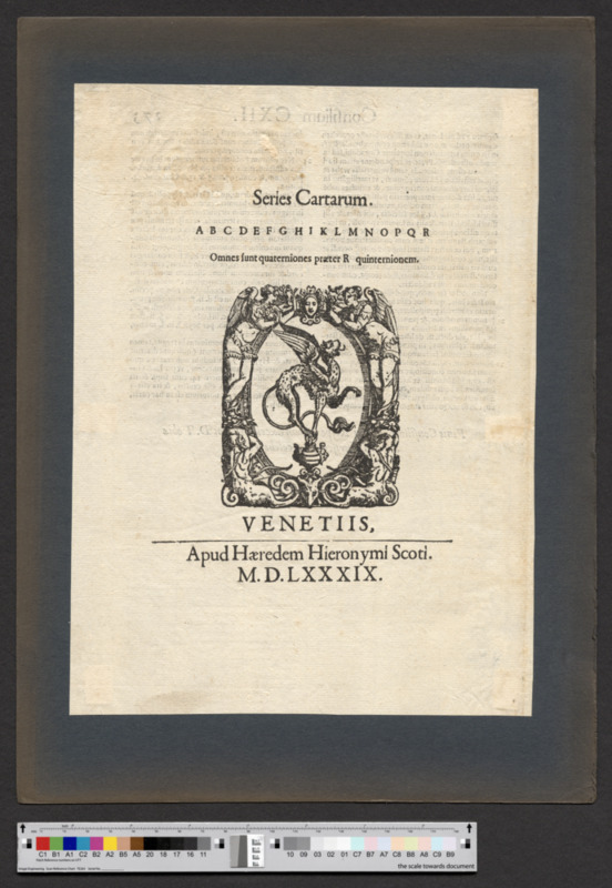 - VENETIIS, / Apud Haeredem Hieronymi Scoti. / M.D.LXXXIX.