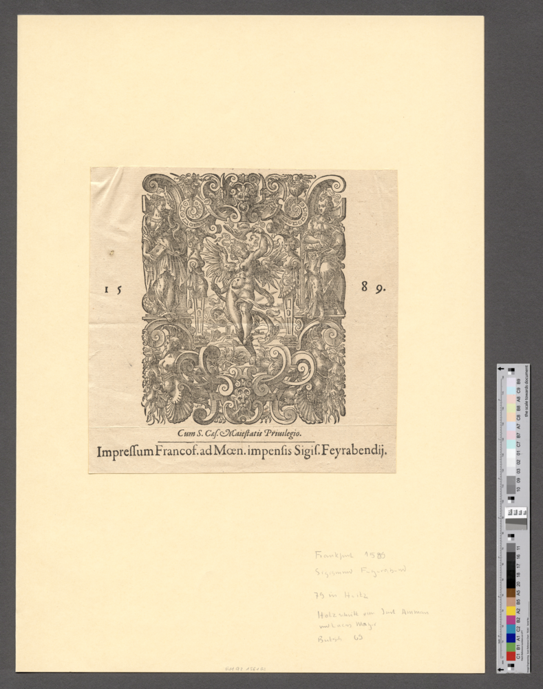 - 1589 / Cum S. C & s. Maiestatis Privilegio. / Impressum Francof. ad Moen. impensis Sigis. Feyrabendij.