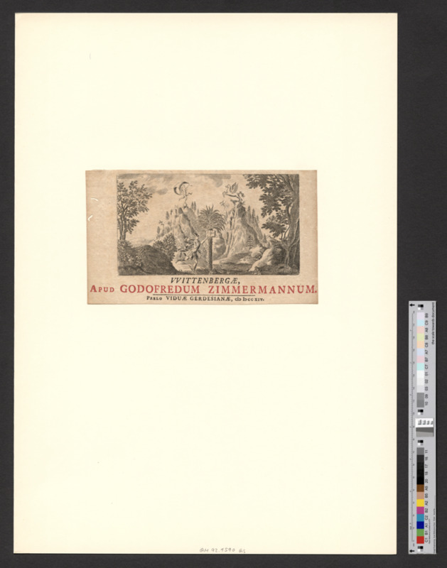 - VVITTENBERGAE, / APUD GODOFREDUM ZIMMERMANNUM. / PRELO VIDUAE GERDESIANAE, cIɔ Iɔ cc XIV.