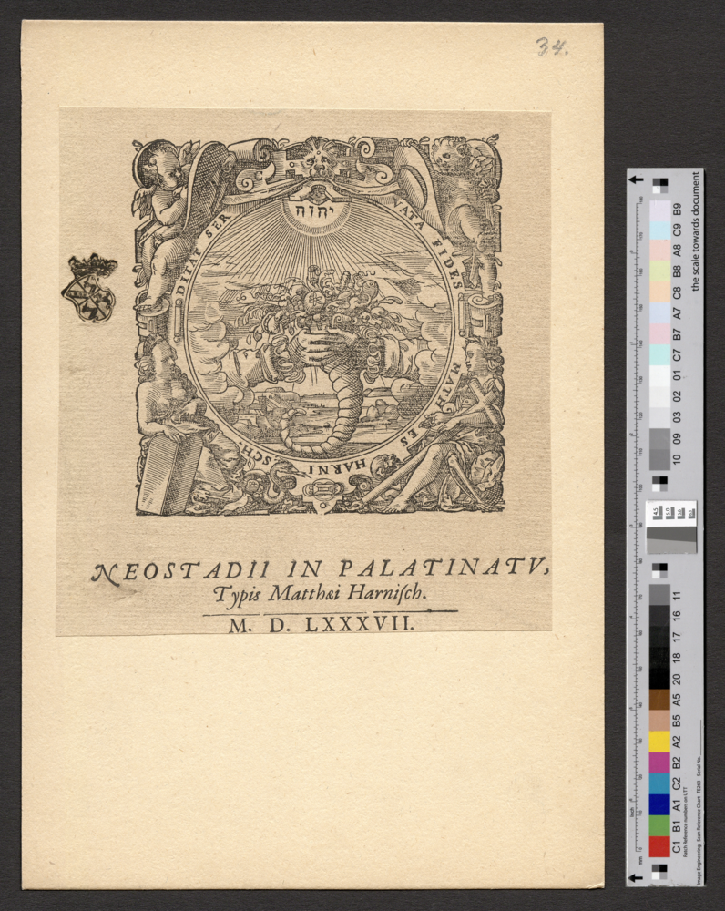 - NEOSTADII IN PALATINATV, / Typis Matthai Harnisch. / M. D. LXXXVII.
