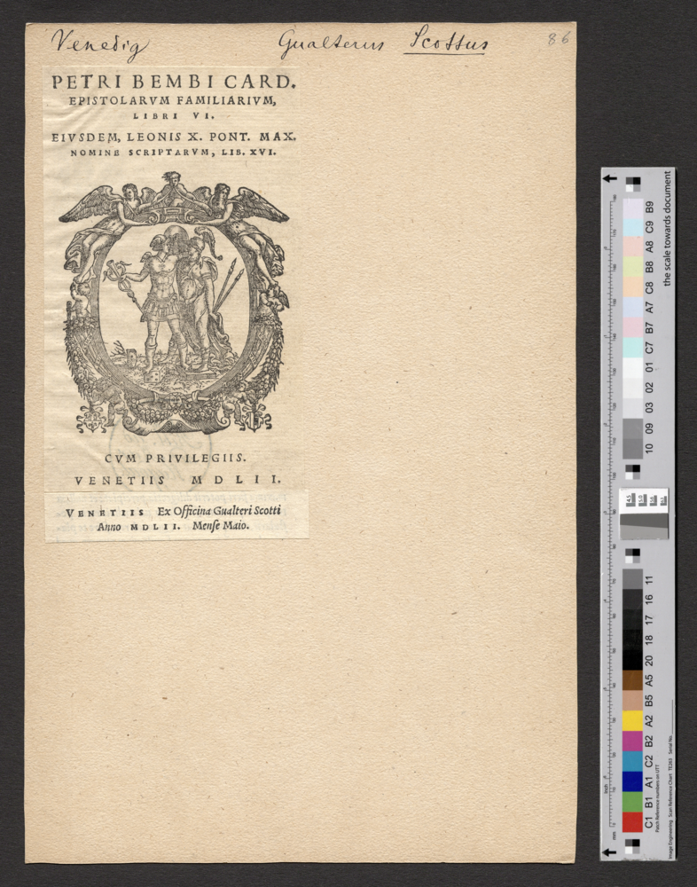 - CVM PRIVILEGIIS. / VENETIIS MDLII. / [VENETIIS Ex Officina Gualteri Scotti / Anno MDLII. Mense Maio.]