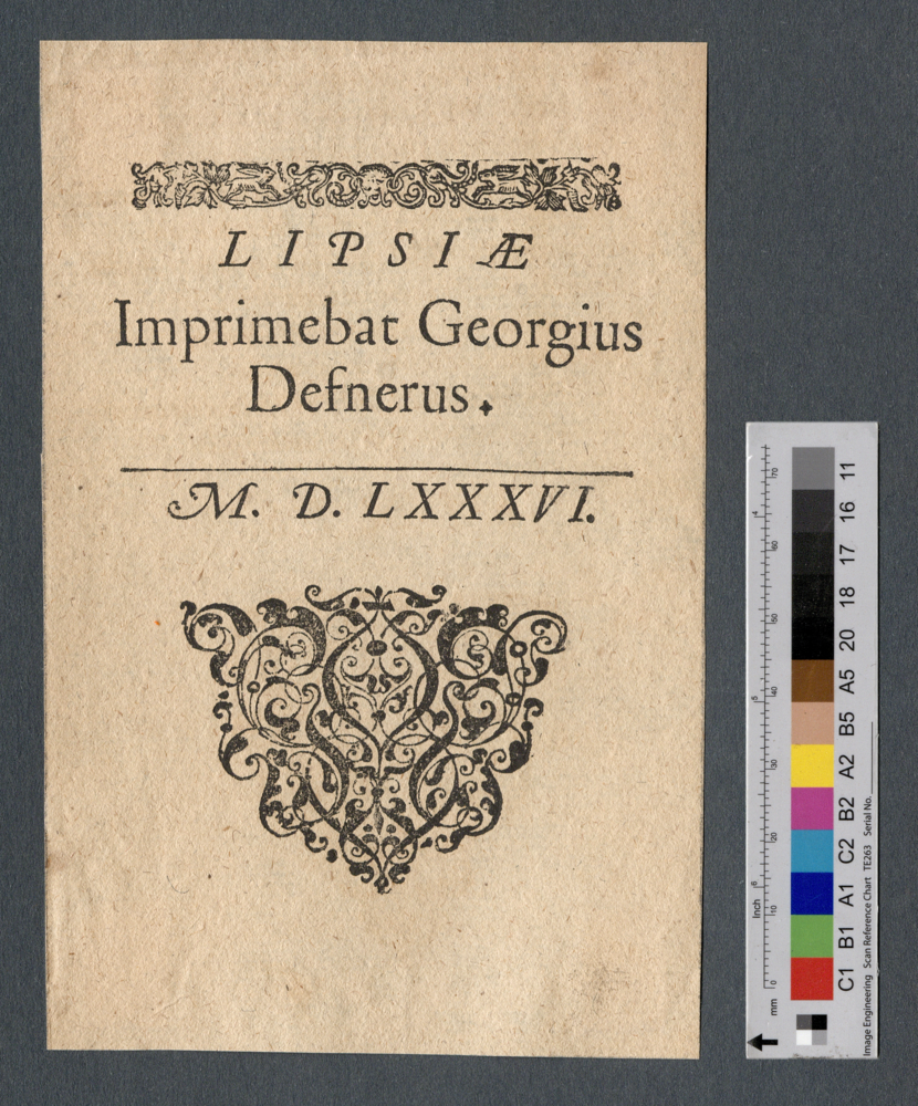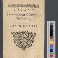 - LIPSIAE / Imprimebat Georgius Defnerus. / M. D. LXXXVI.
