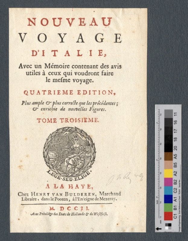 - A LA HAYE, / Chez HENRY VAN BULDEREN, Marchand / Libraire, dans le Pooten, à l'Enseigne de Mezeray. / M. DCCII. / Avec Pivilége des Etats de Hollande & de Westfrise.