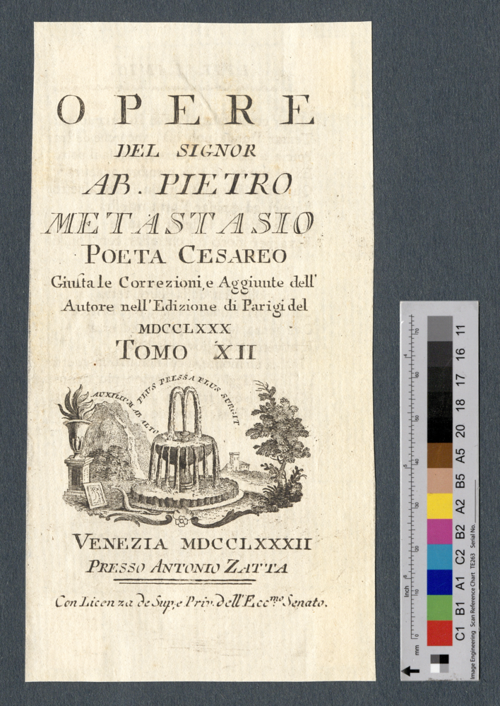- VENEZIA MDCCLXXXII / PRESSO ANTONIO ZATTA / Con Licenza de Sup. e Priv. dell'Eccᵐᵉ Senato.