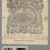 - VENETIIS · M DC X / APVD BARETIVM BARETIVM BIBLIOPOLAM / Ad Signum Beatae Mariae Virginis.
