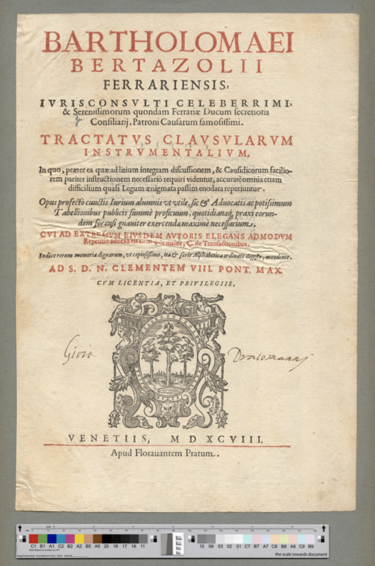 Titelblatt mit Druckerzeichen von Fioravante Prati