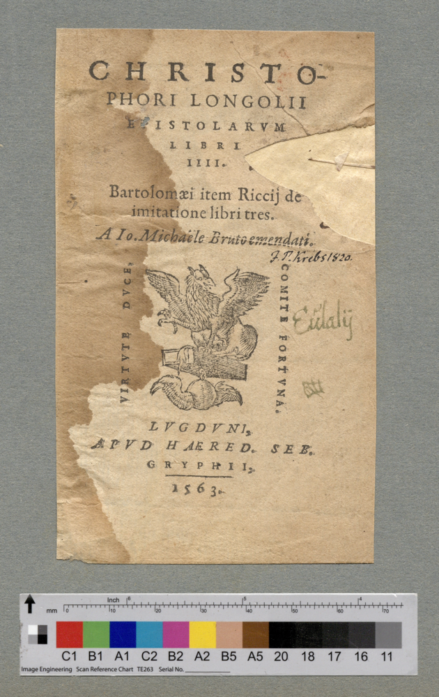 - Titelblatt mit dem Druckerzeichen von Sebastianus Gryphius