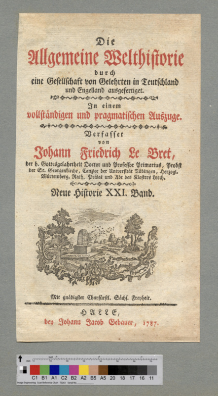 - Mit gnädigster Churfürstl. Sächs. Freyheit. / HALLE, / bey Johann Jacob Gebauer, 1787.