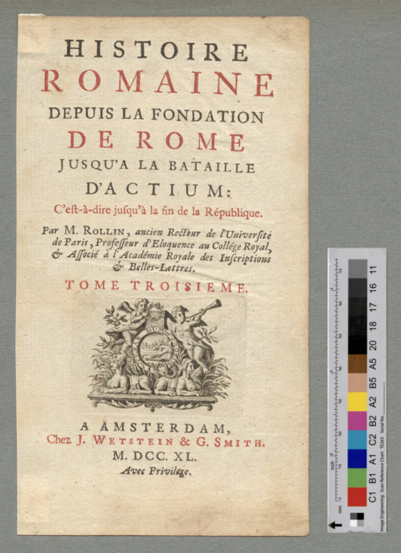 - A AMSTERDAM, / Chez J. WETSTEIN & G. SMITH. / M. DCC. XL. / Avec Privilege.
