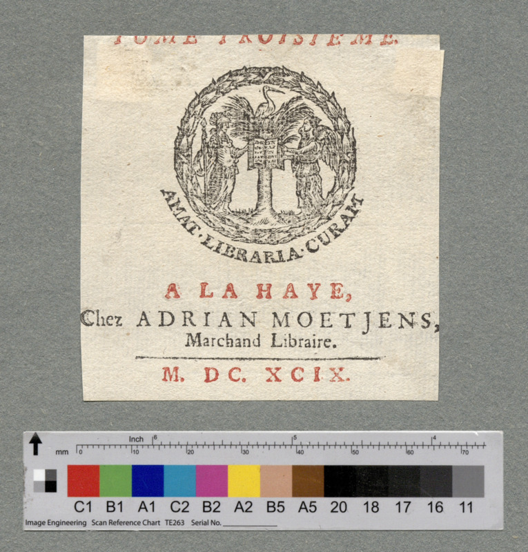 - A LA HAYE, / Chez ADRIAN MOETJENS, / Marchand Libraire. / M. DC. XCIX.