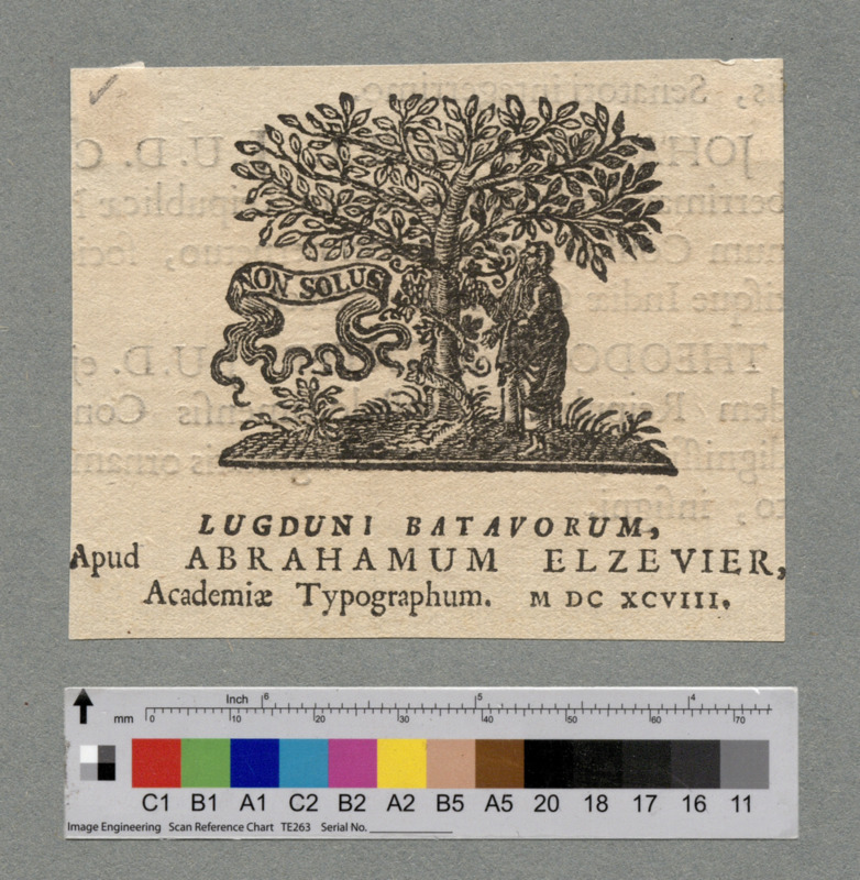 - LUGDUNI BATAVORUM, / Apud ABRAHAMUM ELZEVIER, / Academiae Typographum. M DC XCVIII.