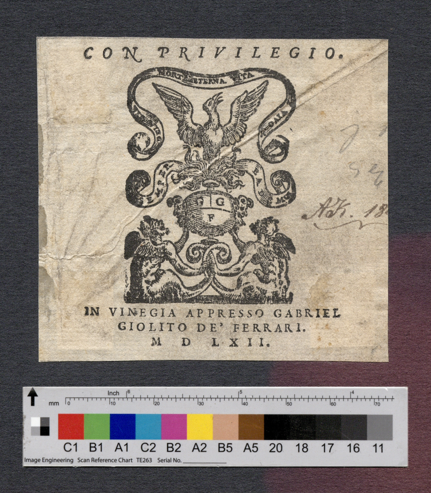 - IN VINEGIA APPRESSO GABRIEL / GIOLITO DE'FERRARI. / M D LXXII.