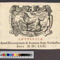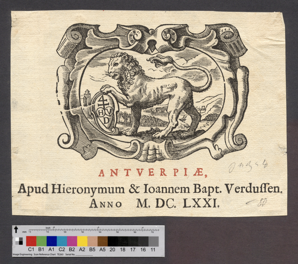 - ANTVERPIAE, / Apud Hieronymum & Ioannem Bapt. Verdussen. / ANNO M. DC. LXXI.