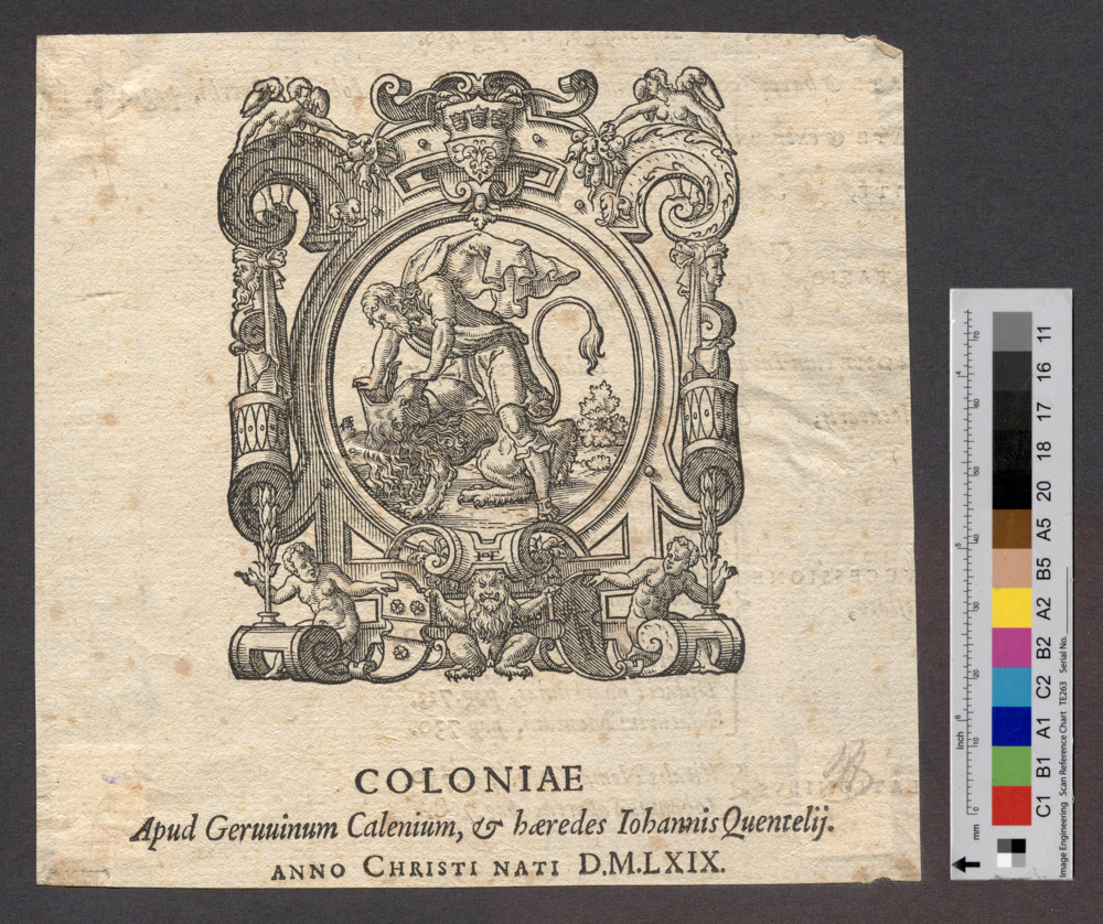 - COLONIAE / Apud Geruuinum Calenium, & haeredes Iohannis Quentelij. / ANNO CHRISTI NATI D.M.LXIX.