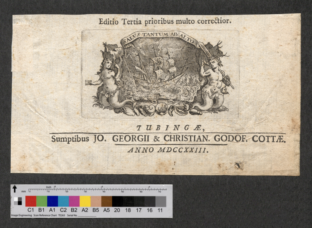 - TUBINGAE, / Sumptibus JO. GEORGII & CHRISTIAN. GODOF. COTTAE. / ANNO MDCCXXIII.