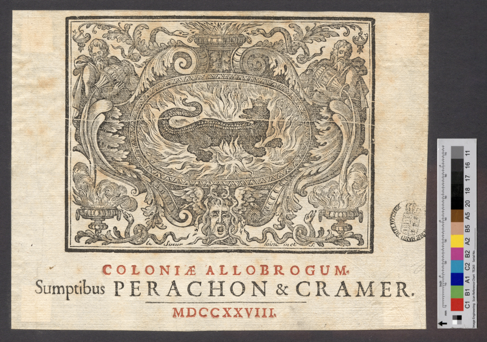 - COLONIAE ALLOBROGUM. / Sumptibus PERACHON & CRAMER. / MDCCXXVIII.