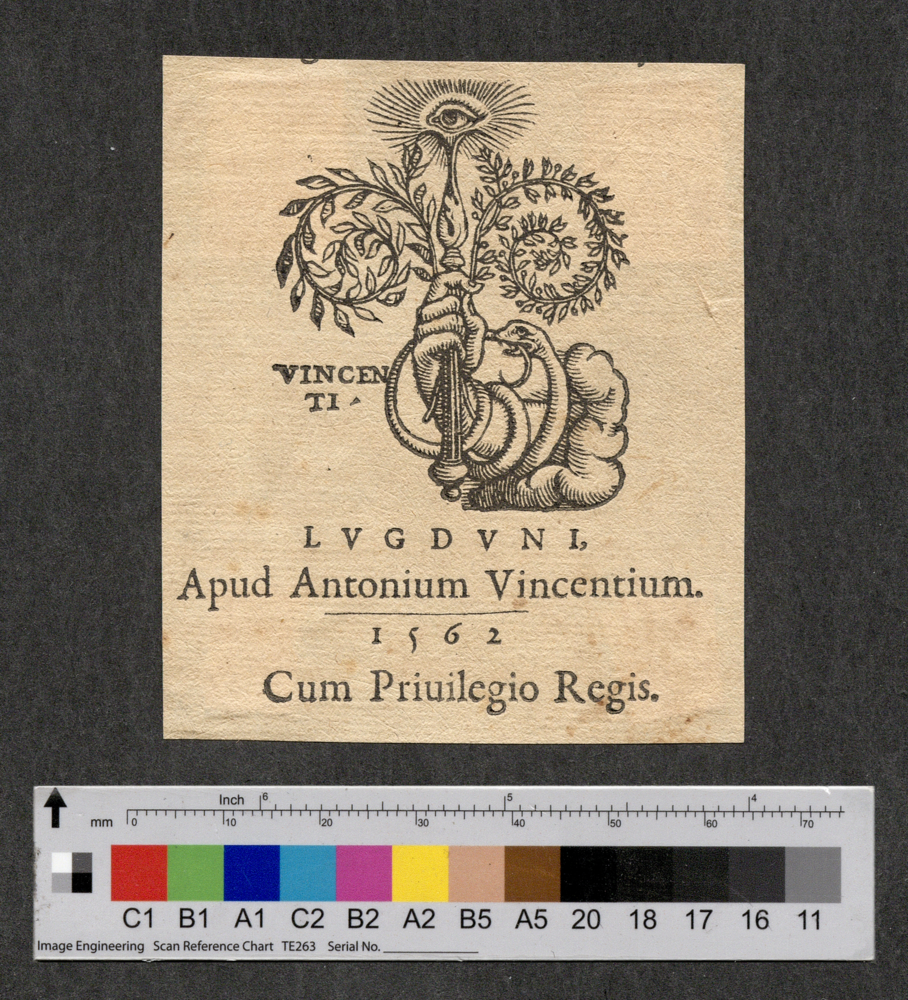 - LVGDVNI, / Apud Antonium Vincentium. / 1562 / Cum Priuilegio Regis.