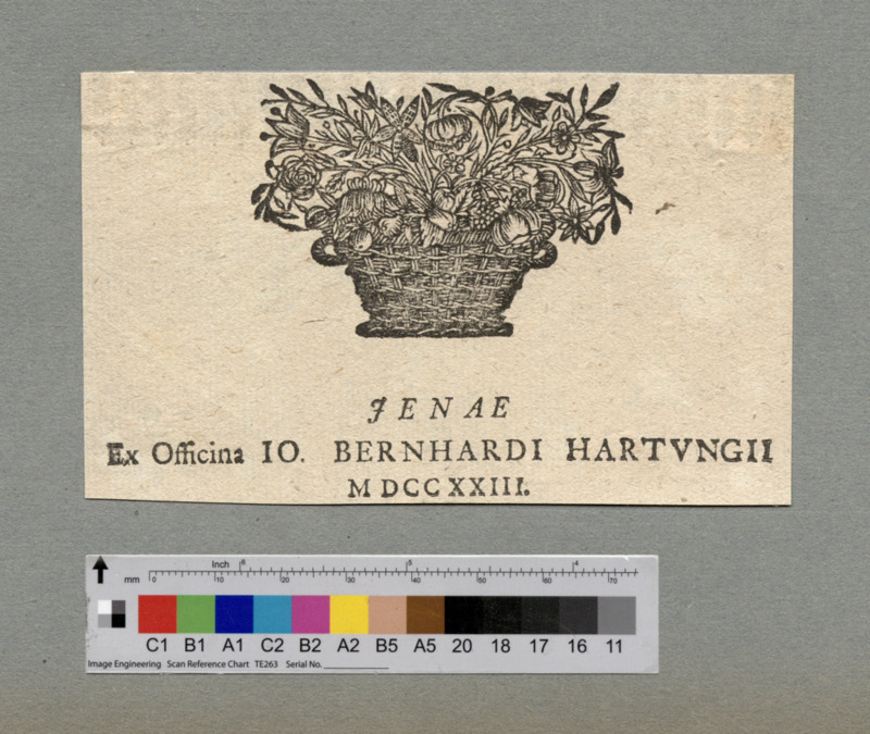 - JENAE / Ex Officina IO. BERNHARDI HARTVNGII / M DCC XXIII.