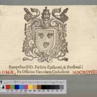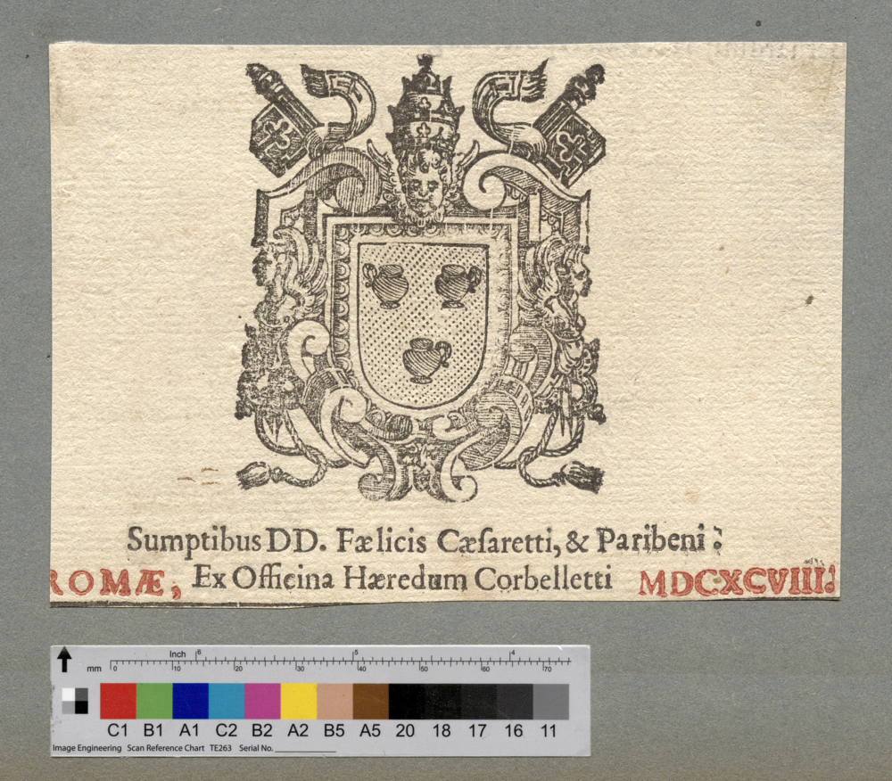 - Sumptibus DD. Faelicis Caesaretti, & Paribeni. / ROMAE, Ex Officina Haeredum Corbelletti MDCVCVIII.