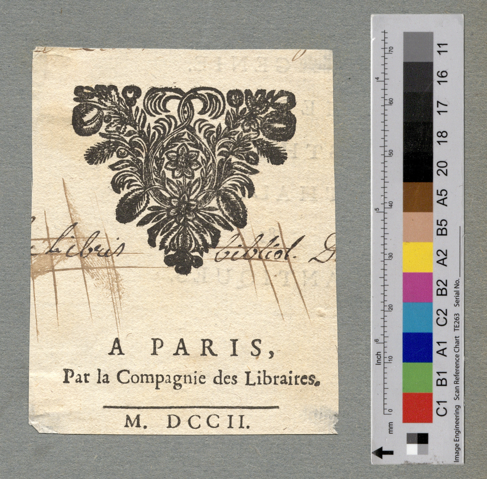 - A PARIS, / Par la Compagnie des Libraires. / M. DCCII.