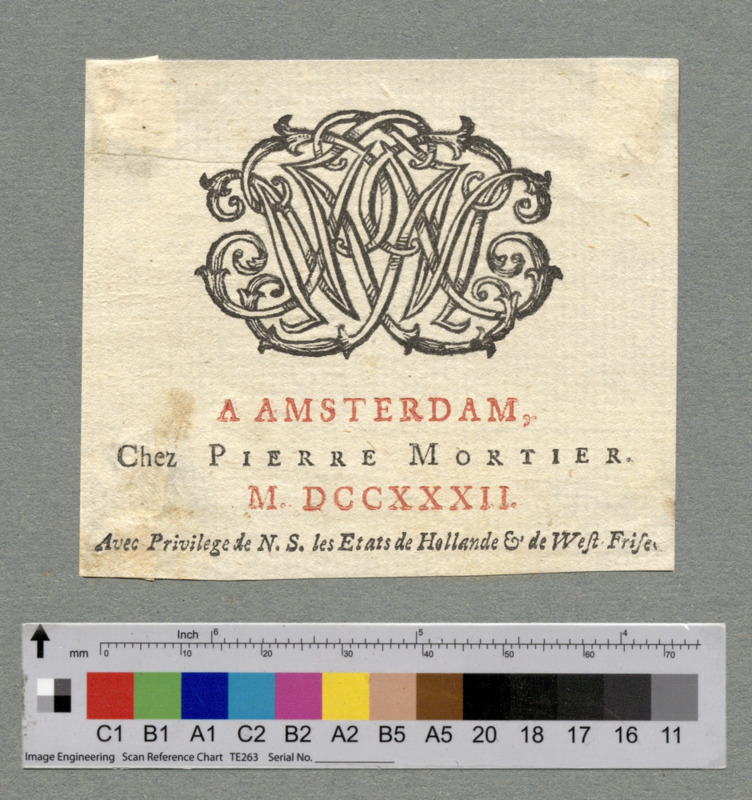 - A AMSTERDAM, / Chez PIERRE MORTIER. / M. DCCXXXII. / Avec Privilege de N. S. les Etats de Hollande & de West Frise.