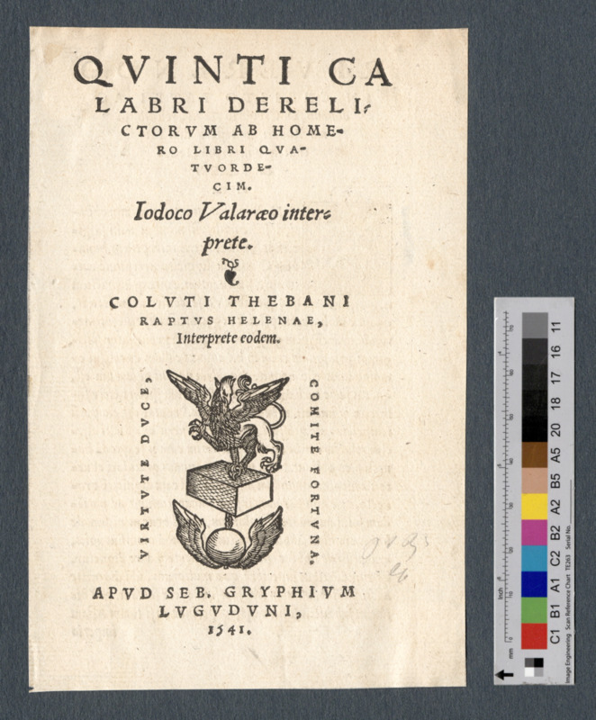 - Titelblatt mit dem Druckerzeichen von Sebastianus Gryphius