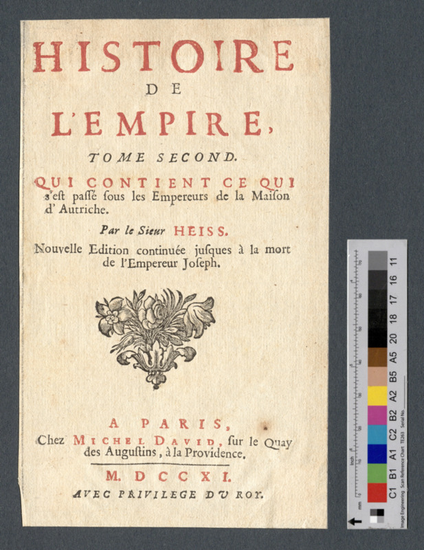 - A PARIS, / Chez MICHEL DAVID, sur le Quay / des Augustins, à la Providence. / M. D C C X I. / AVEC PRIVILEGE DU ROY.