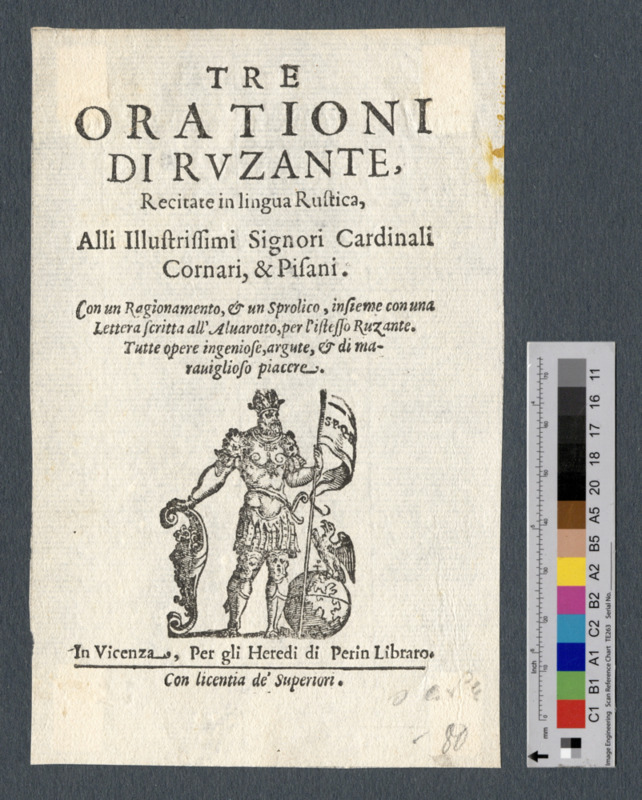 - In Vicenza, Per gli Heredi di Perin Libraro. / Con licentia de' Superiori.
