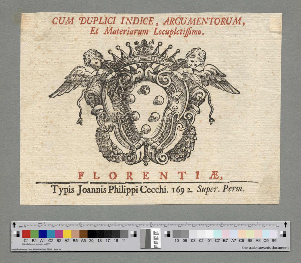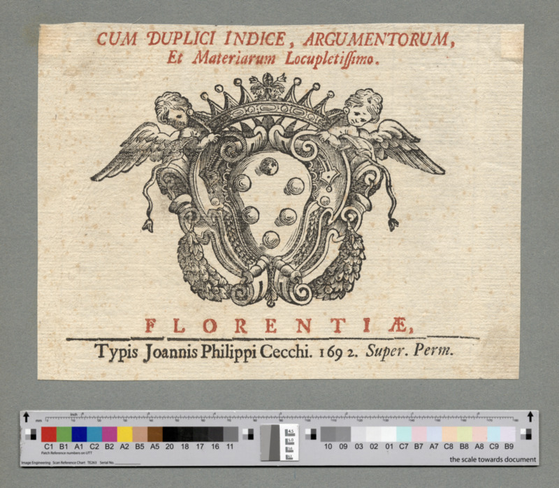 - FLORENTIAE, / Typis Joannis Philippi Cecchi. 1692. Super. Perm.