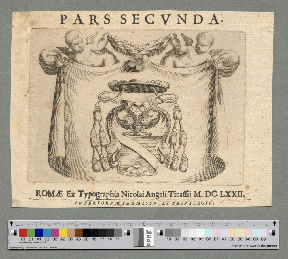 - ROMAE Ex Typographia Nicolai Angeli Tinassij M. DC. LXXII. / SVPERIORVM PERMISSV, ET PRIVILEGIO.