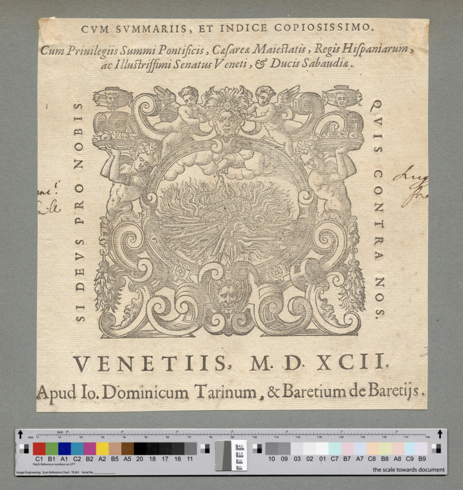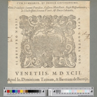 - VENETIIS, M. D. XCII. / Apud Io. Dominicum Tarinum, & Baretium de Baretijs.