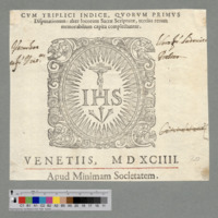 - VENETIIS, M D XCIIII. / Apud Minimam Societam.