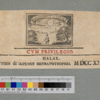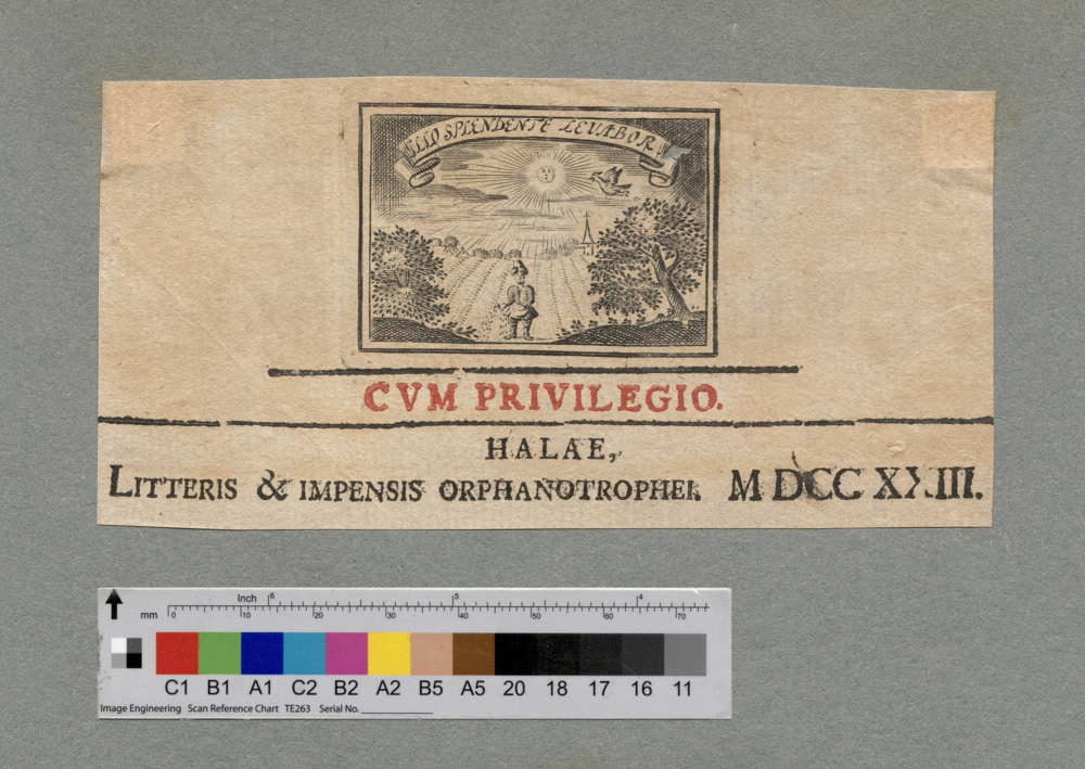 - CVM PRIVILEGIO. / HALAE, / LITTERIS & IMPENSIS ORPHANOTROPHEI. / M DCC XXIII.