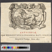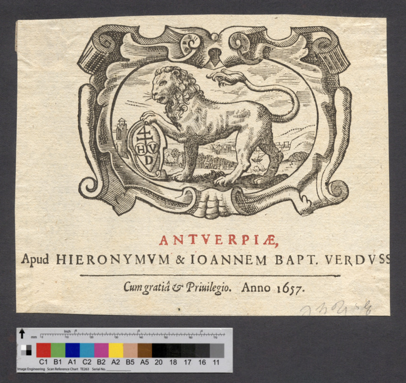 - ANTVERPIAE, / Apud HIERONYMVM & IOANNEM BAPT. VERDVSS / Cum gratiâ & Priuilegio. Anno 1657.