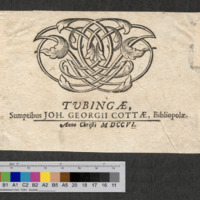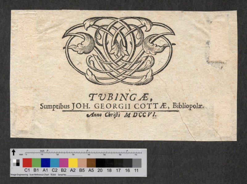 - TVBINGAE, / Sumptibus JOH. GEORGII COTTAE, Bibliopolae. / Anno Christi M DCCVI