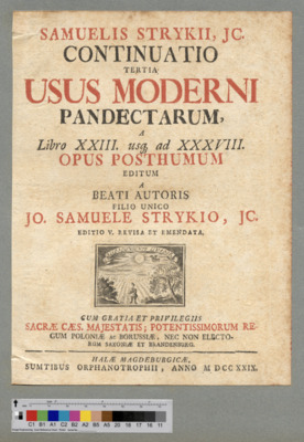 Titelblatt mit dem Druckerzeichen von Franckesche Stiftungen zu Halle. Waisenhaus. Buchdruckerei -