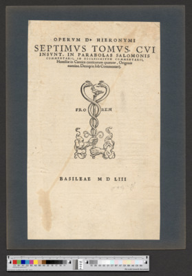 Titelblatt mit dem Druckerzeichen von Hieronymus Froben und Nicolaus Episcopius -