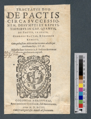 Titelblatt mit dem Druckerzeichen von Johann Gymnich und Anton Hierat -