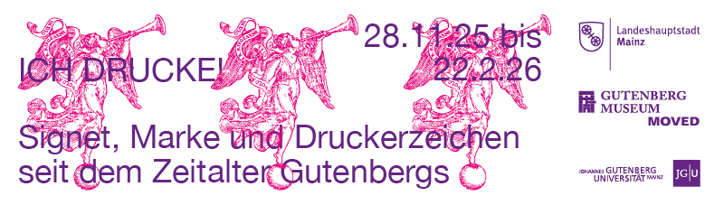 Für die Sonderausstellung Ich drucke! Signet, Marke und Druckerzeichen seit dem Zeitalter Gutenbergs (28. November 2025 – 22. Februar 2026) wurde der Bestand des Gutenberg-Museums in Kooperation mit der Johannes Gutenberg-Universität Mainz digitalisiert. Die circa 1500 Druckzeichen der losen Blattsammlung wurden im Servicezentrum Digitalisierung und Fotodokumentation der JGU gescannt. An der Erschließung der Druckerzeichen und der Aufbereitung der Daten war ein großer Kreis aus Wissenschaftler:innen beteiligt.